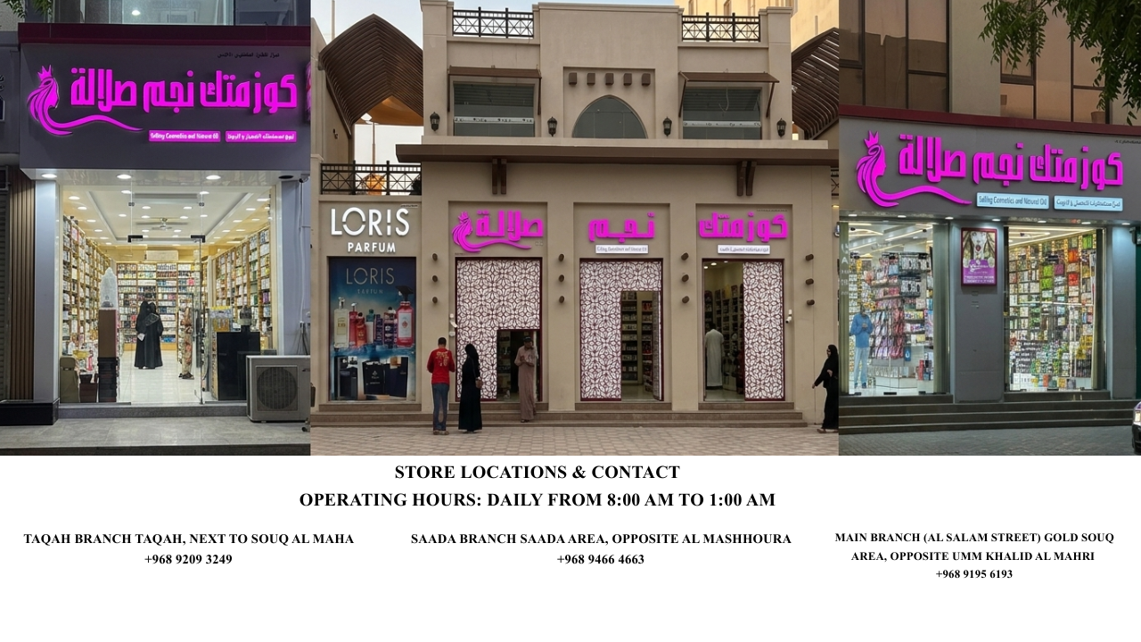 At Cosmetic Najm Salalah, you will find 100% authentic products, expert guidance, and a shopping experience designed to make you feel special, valued, and beautiful.
